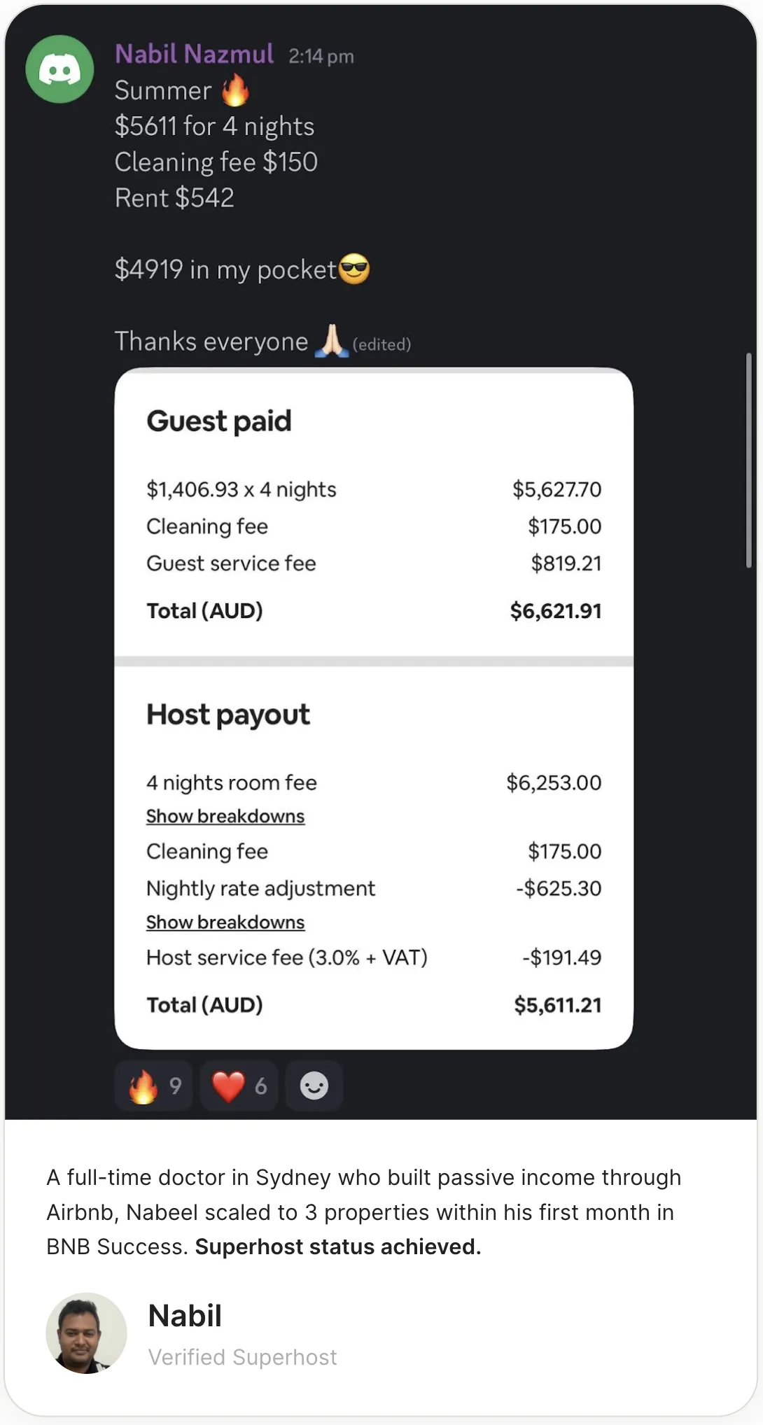Our "Profit Maximiser" system cuts furnishing costs by 50% while commanding premium nightly rates – including our exact supplier list that saved us over $4,000 on our most recent property setup (and you'll get access to it day one)...